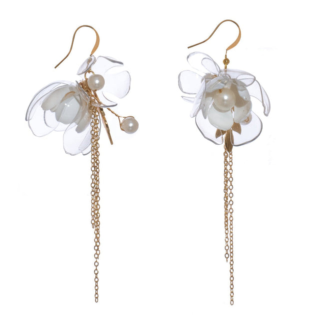 Clear Triple-Flower Drop Earrings