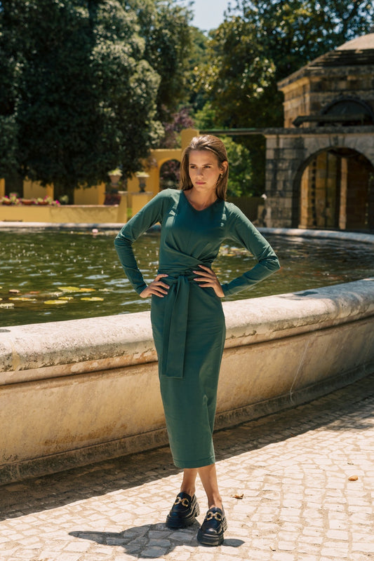 This season's new Zoey Dress is a must-have for autumn days! The fitted cut highlights your best features, while the midi-length hem creates an elegant and versatile look. A beautiful detail of the dress is the tie belt, which creates a wrap-style silhouette. You can tie the belt in the front or back according to your taste. The stunning midi-length Zoey dress is made from mercerized, high-quality cotton.